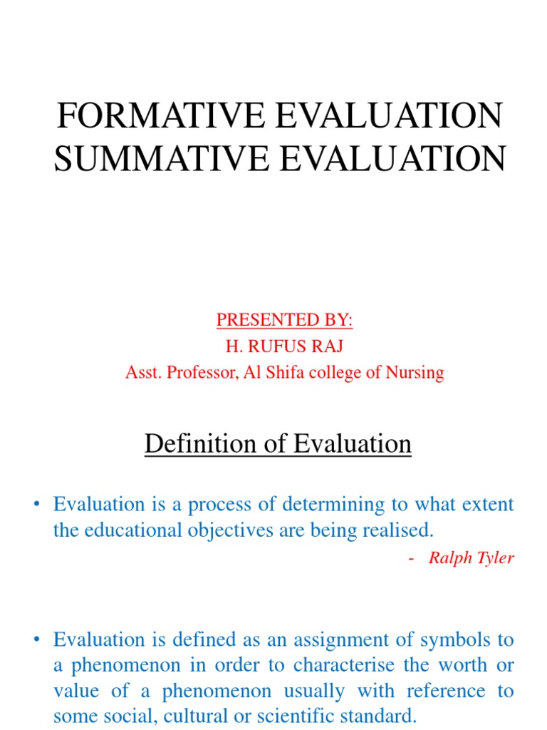 FORMATIVE EVALUATION SUMMATIVE EVALUATION