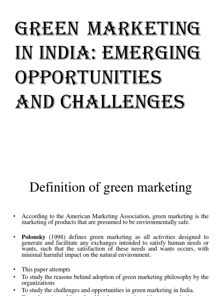 GREEN MARKETING IN INDIA: EMERGING OPPORTUNITIES AND CHALLENGES