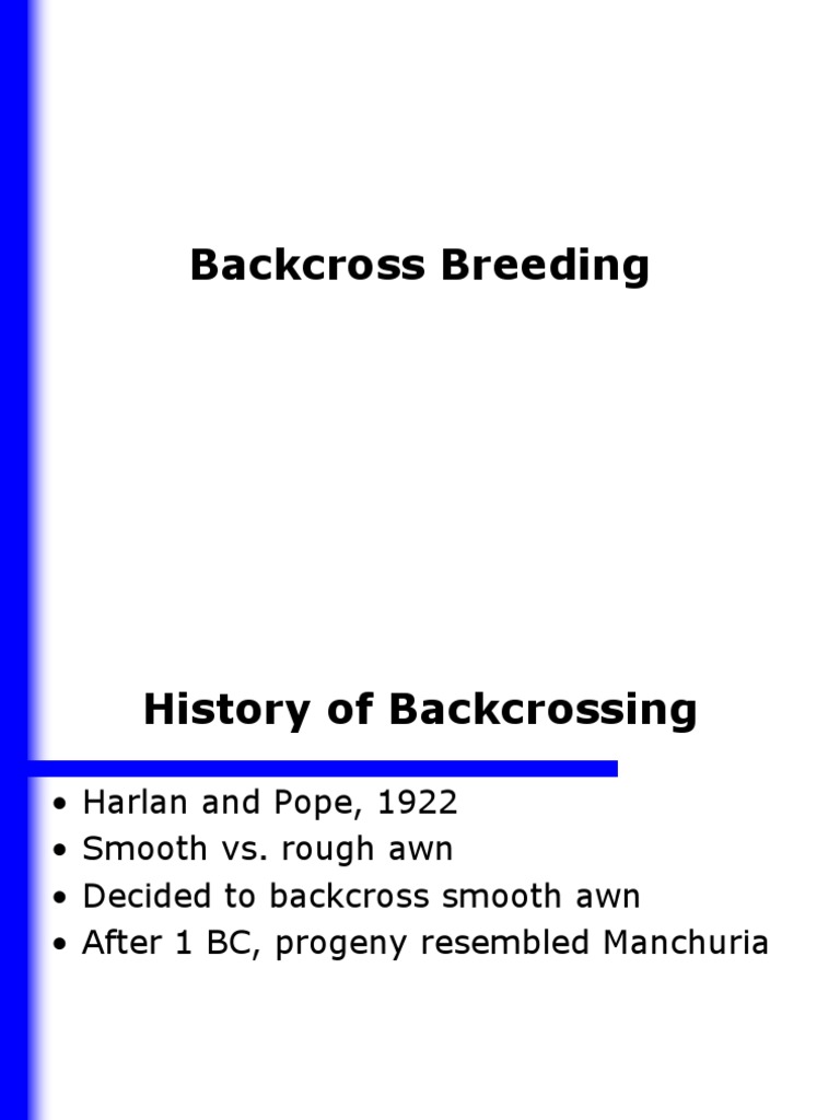 Harlan and Pope, 1922 Smooth vs. rough awn Decided to backcross smooth awn After 1 BC, progeny resembled Manchuria