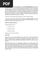 Define horizontal integration List and explain the advantages and disadvantages of horizontal integration Define vertical integration Explain the three types of vertical integration List and explain the advantages and disadvantages of Vertical integration