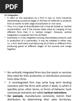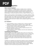 Define Vertical Integration What are the three types of vertical integration and explain each. What are 2 advantages of vertical integration? What are 2 disadvantages of vertical integration?