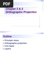 "straight writing (or drawing)." This projection shows the object as it looks from the front, right, left, top, bottom, or back, and are typically positioned relative to each other according to the rules of either First Angle or Third Angle projection.