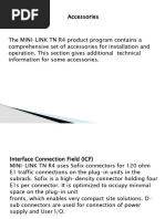 Switch Multiplexer Unit (SMU) Provides protection for the Radio [Link] it can be configured to interface MINI-LINK E equipment on the same site. Power Filter Unit (PFU) Filters the external power and distributes the internal power to the plug-in units via the backplane. Fan Unit (FAU) Provides cooling for the indoor part. The interconnection between the outdoor part (Radio Units and antennas) and the indoor part is one coaxial cable per MMU carrying full duplex traffic, DC supply voltage, as well as operation and maintenance data.