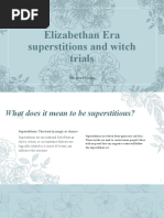 Some superstitions during the Elizabethan era came forth due to belief in witchcraft and witches. Women during the Elizabethan period were accused most of being witches. There were 270 witch trials of those trials 247 of the trials were women and only 23 were men.