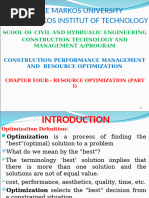 Resource Leveling (RL) makes use of floats or time tolerances in the schedule to re-schedule resources and bring back any deviation of actual progress from schedule to within acceptable limits RL applies to resources which are hired i.e. labour and equipment but not material. The need for these 2 resources fluctuates greatly as some activities start (requiring resources) while other finish (releasing resources) RL improves efficiency and minimize project cost (by optimizing labour usage and cost)
