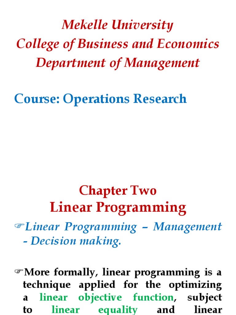 Mekelle University College of Business and Economics Department of Management Course: Operations Research