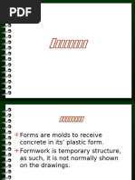 Forms are molds to receive concrete in its plastic form. Formwork is temporary structure, as such, it is not normally shown on the drawings.