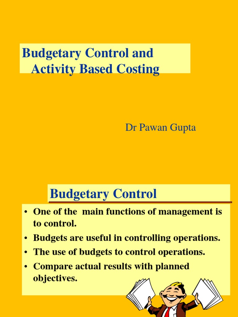 One of the main functions of management is to control. Budgets are useful in controlling operations. The use of budgets to control operations. Compare actual results with planned objectives.