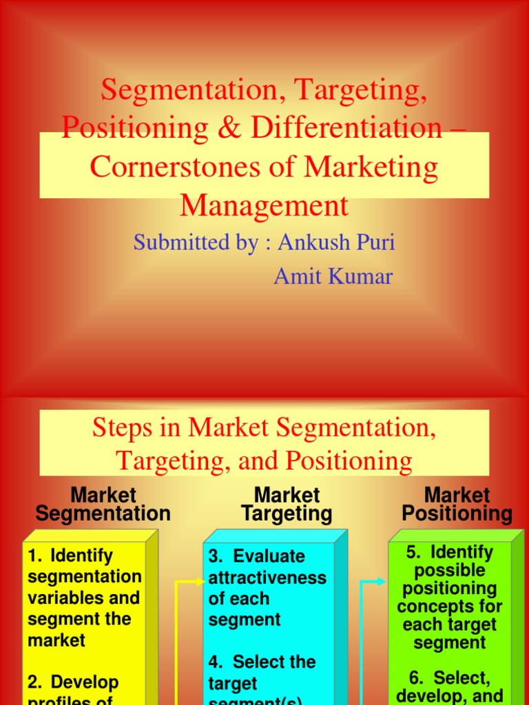 Segmentation, Targeting, Positioning & Differentiation Cornerstones of Marketing Management
