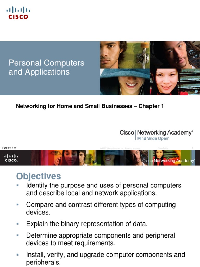 Compare and contrast different types of computing devices. Explain the binary representation of data. Determine appropriate components and peripheral devices to meet requirements.