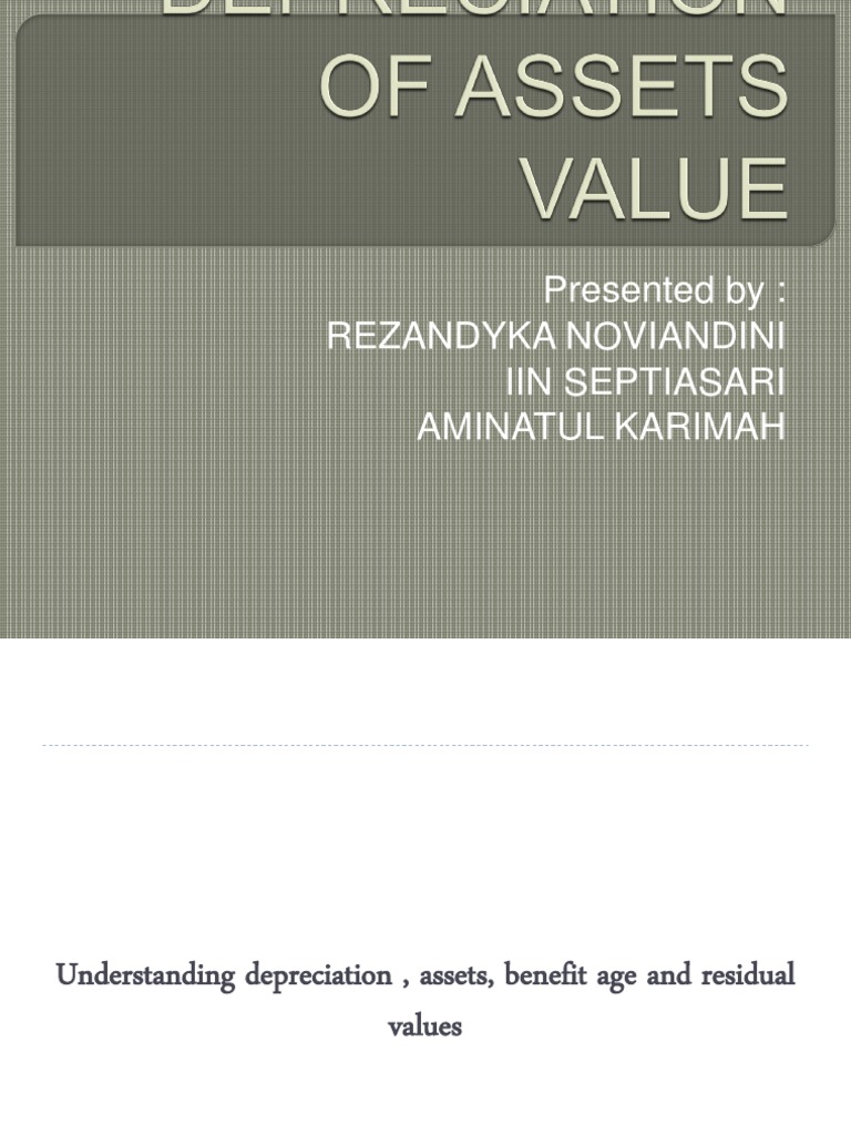 Understanding depreciation , assets, benefit age and residual values