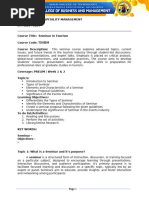 Seminars are small group teaching and learning arrangements that use group interaction as a means of engaging participants. Although seminars usually begin with a presentation or mini-lecture to provide the basis for discussion, the word seminar also includes rather formal group discussions led by the teacher and focused on the content rather than on issues arising from students (Jaques, 1991).
