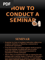 The type of seminar being presented will influence the venue that is chosen. The facilities of the venue should be able to comfortably accommodate the participants while taking into consideration the needs of the speaker and the budget. Points to CONSIDER: Cost Capacity Computer accessibility Lighting, Audio and Temperature