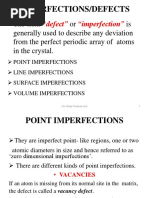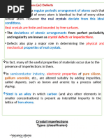 Point defects and line defects affect elevated temperature mechanical properties like creep. Bulk defects are of interest in context of solidification, deformation process and powder metallurgy, hardening process, etc.
