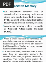 wired in for each word. Associative memory or CAM(Content Addressable Memory) is accessed by content of a word. Data stored in memory words is divided into various fields One of these fields can be used as the key and the memory can be accessed by a specified key value(say v)