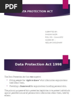 The 1998 Data Protection Act was passed by Parliament to control the way information is handled and to give legal rights to people who have information stored about them. Basically it works by: setting up rules that people have to follow having an Information Commissioner to enforce the rules