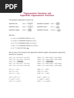 coshx = 1 + cosh 2x , sinhx = cosh 2x - 1 2 2 tanh2x = 2 tanhx . 1 + tanhx (vi) sinhx + sinhy = 2sinh(x +y) cosh(x y) 2 2 sinhx - sinhy = 2cosnh(x +y)/2 sinh(x y)/2 coshx + coshy = 2cosh(x +y)/2 cosh(x y)/2 coshx - coshy = 2sinh (x +y)/2 sinh (x y)/2 (vii) 2sinh A cosh B = sinh (A + B) + sinh (A B) 2cosh A sinh B = sinh (A + B) sinh (A B) 2cosh A cosh B = cosh (A + B) + cosh (A - B) 2sinh A sinh B = cosh (A + B) cosh (A - B) (viii) d sinh x = cosh x; d cosech x = - cosech x coth x dx dx d cosh x = - sinh x; d sech x = sech x tanh x dx dx