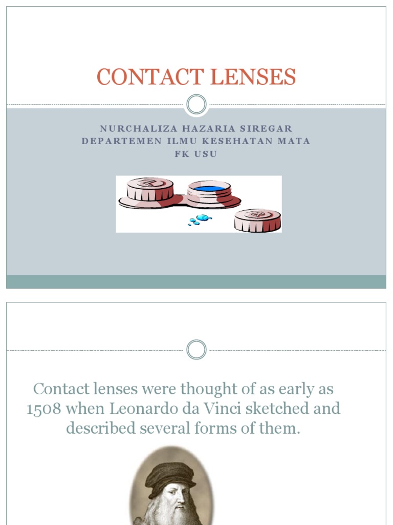 Contact lenses were thought of as early as 1508 when Leonardo da Vinci sketched and described several forms of them.