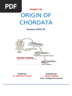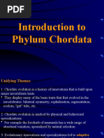 Chordate evolution is a history of innovations that is built upon major invertebrate traits. They display many of the basic traits that first evolved in the invertebrates: bilateral symmetry, cephalization, segmentation, coelom, "gut" tube, etc. Chordate evolution is marked by physical and behavioral specializations For example the forelimb of mammals has a wide range of structural variation, specialized by natural selection