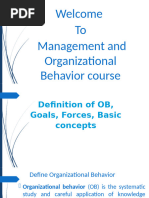 Definition: The study of human behavior, attitudes, and performance in organizations. Value of OB: Helps people attain the competencies needed to become effective employees, team leaders/members, or managers Competency = an interrelated set of abilities, behaviors, attitudes, and knowledge needed by an individual to be effective in most professional and managerial positions