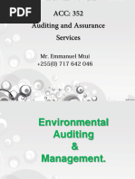Understanding Environmental Management Systems (EMS) Assessing strengths and Weaknesses of EMS Gathering Audit Evidence Evaluating Audit Results Reporting Audit Findings