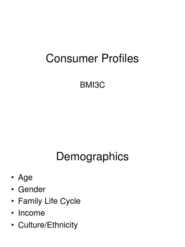 Age Gender Family Life Cycle Income Culture/Ethnicity