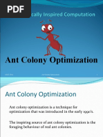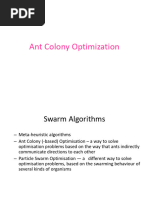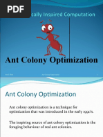 A stochastic construction procedure Probabilistically build a solution Iteratively adding solution components to partial solutions - Heuristic information - Pheromone trail Reinforcement Learning reminiscence Modify the problem representation at each iteration