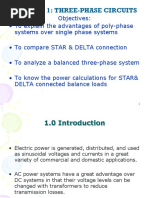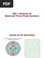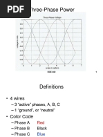 Three sinusoidal voltages of equal amplitude and frequency out of phase with each other by 120. Known as balanced. Phases are labeled A, B, and C. Phases are sequenced as A, B, C (positive) or A, C, B (negative).