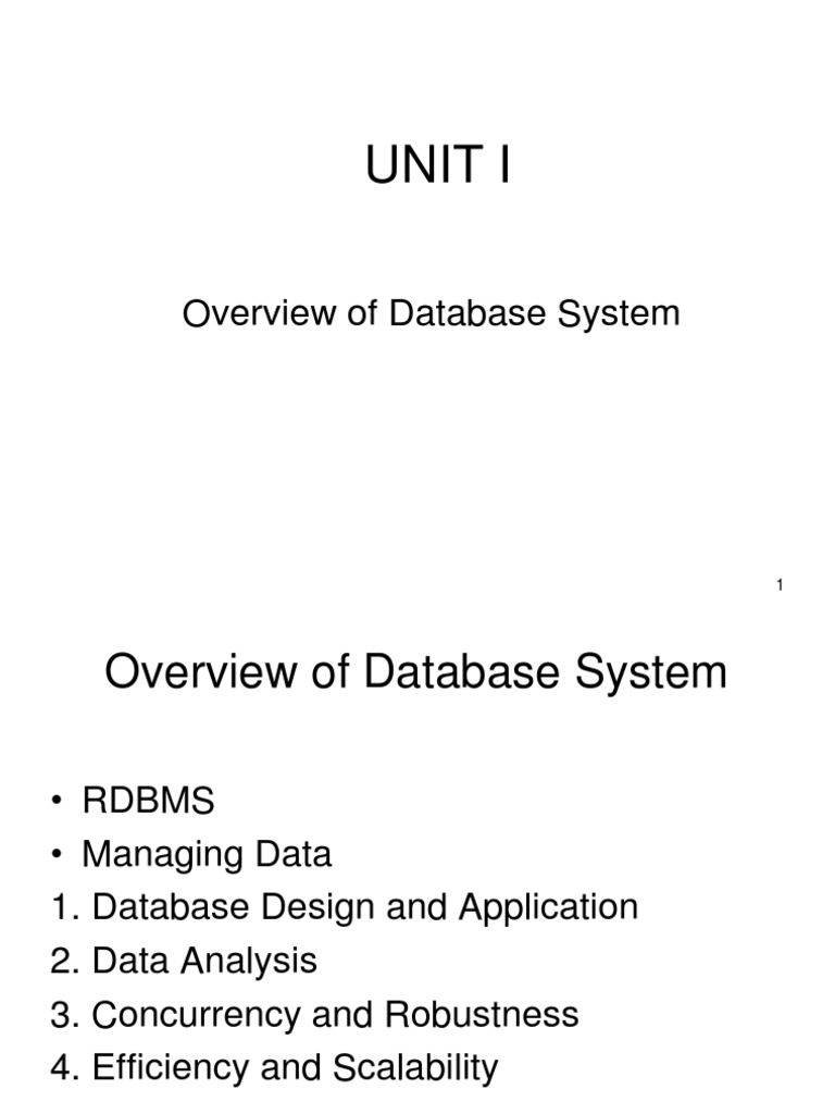 RDBMS Managing Data 1. Database Design and Application 2. Data Analysis 3. Concurrency and Robustness 4. Efficiency and Scalability