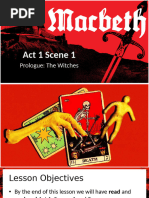 The play opens in Scotland. Macbeth and Banquo have defeated their enemies in battle. This leads King Duncan to give the title of thane of Cawdor to Macbeth (who doesnt know this yet). While Macbeth and Banquo are walking, they encounter three chanting witches. The witches speak to Macbeth as thane of Glamis, thane of Cawdor, and king hereafter. They also tell Banquo that though we will not be king, he will beget kings (i.e., his sons will be kings).