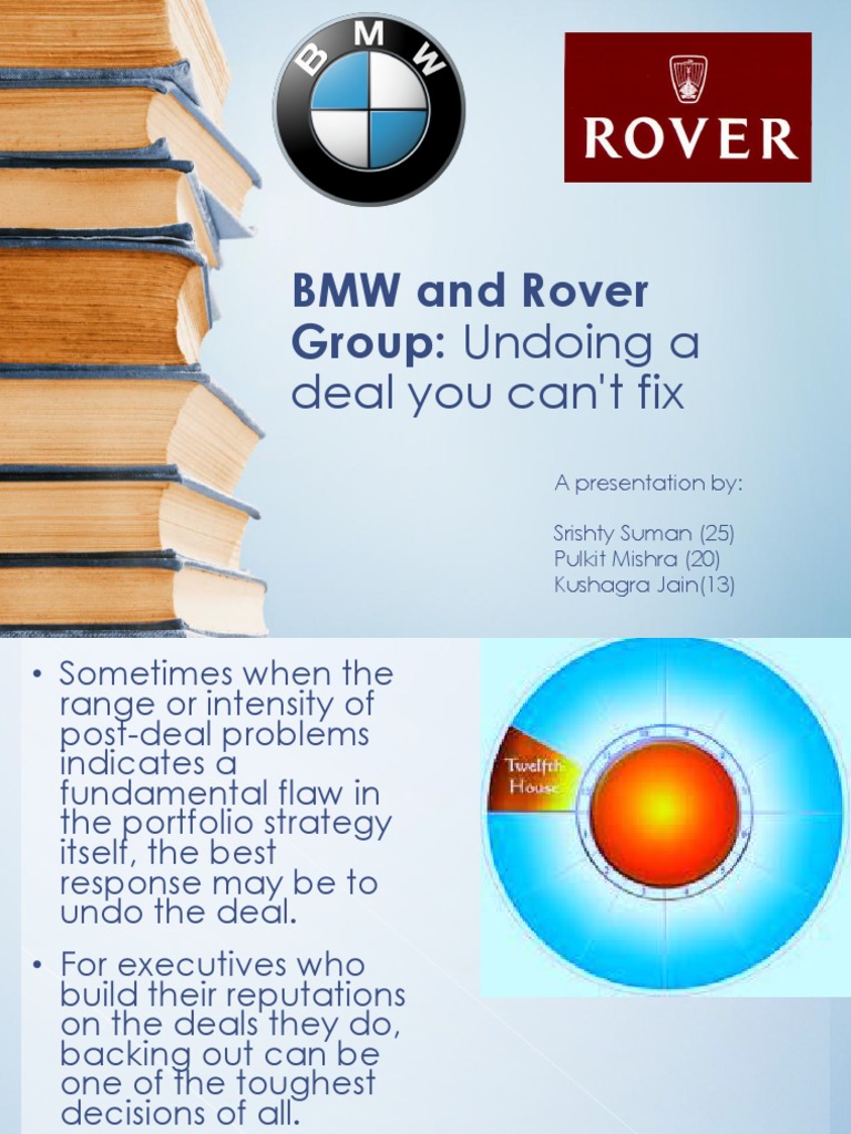 A case in point is BMW's1.7 billion acquisition of the U.K.'s Rover Group in 1994. The deal shows just how badly things can go when a poor investment thesis is coupled with hasty due diligence.