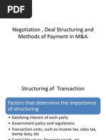NEGOTIATIONS, DEAL STRUCTURING & METHODS OF PAYMENTS