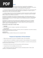 It is the discovering of potential of applicants for actual or anticipated organizational vacancies. It actually links together those with jobs and those seeking jobs. Flippo's definition: "It is a process of searching for prospective employees and stimulating and encouraging them to apply for jobs in an organization.
