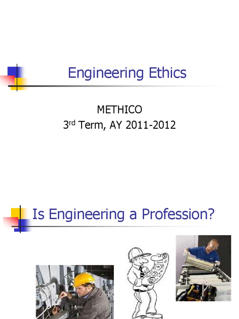 Ethics refers to the particular beliefs or attitudes concerning morality that are endorsed by specific groups or individuals. Engineering Ethics consists of the requirements specified in the currently accepted engineering codes of ethics.