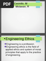 Ethics refers to an area of inquiry. It is the activity of understanding moral values, resolving moral issues and justifying moral judgments. Engineering Ethics is the study of moral values, issues and decisions involved in engineering practice.