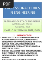 The engineers make a promise to the public that they will practice their profession guided by set of rules of conduct or canons for ethical conduct called Code of Ethics. Luegen-biel (1991) defines the Code of Ethics as a set of ethical rules that are to govern engineers in their professionals lives.