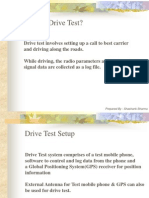 Drive Test is one of the most comprehensive procedures of testing and analyzing a Radio Frequency Network Coverage evaluation System availability Network capacity Network retainability Call quality