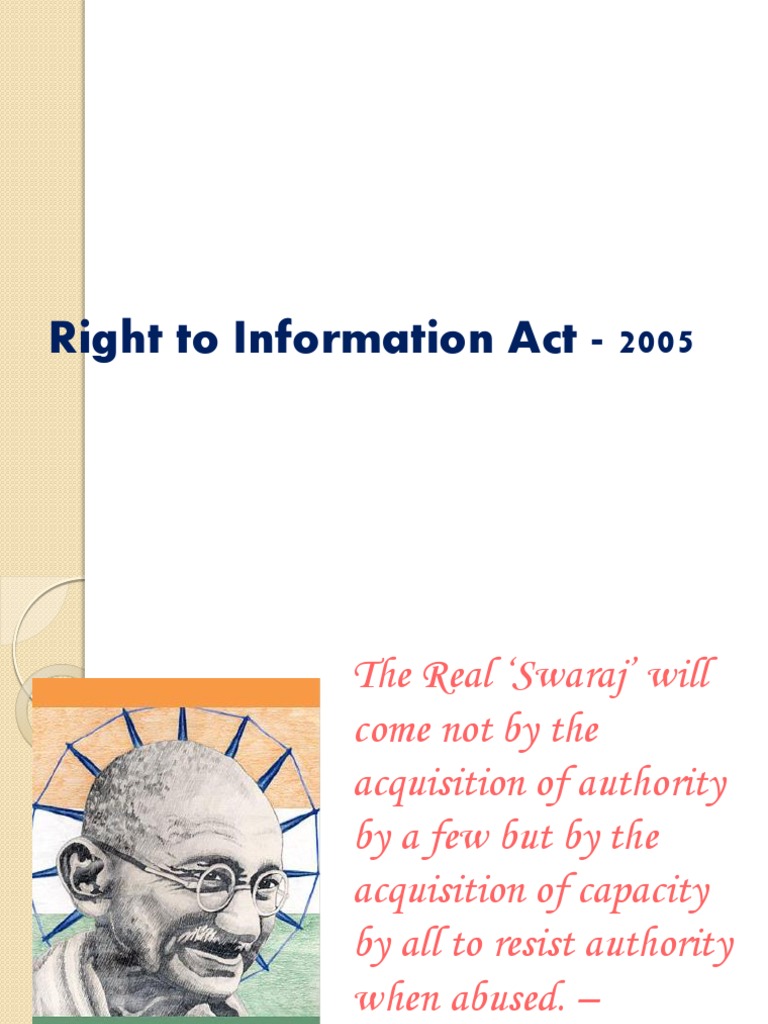 Official Secrets Act 1923 had made disclosure of information punishable. o RTI Act fulfills the ambitions by disclosure of information mandatory. eg,. a. Ensuring Free Education for children in Gujarat where
