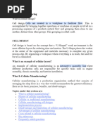 A lean manufacturing approach that helps companies build a variety of products with as little waste as possible Equipment and workstations arranged in a sequence that supports smooth material flow through the process, with minimal transport or delay Derived from the word Cell A Manufacturing Cell consists of people and machines or workstations required for performing the process steps For example - if a process for a product requires cutting, followed by drilling and finishing, the cell would include the equipment for performing those steps, arranged in that order Helps companies achieve two important goals of lean:
