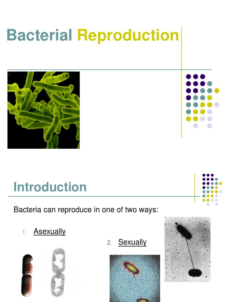 1.Binary Fission 2.Budding 3.Fragmentation 4.Spore Formation