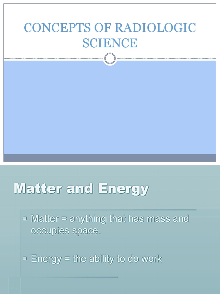CONCEPTS OF RADIOLOGIC SCIENCE