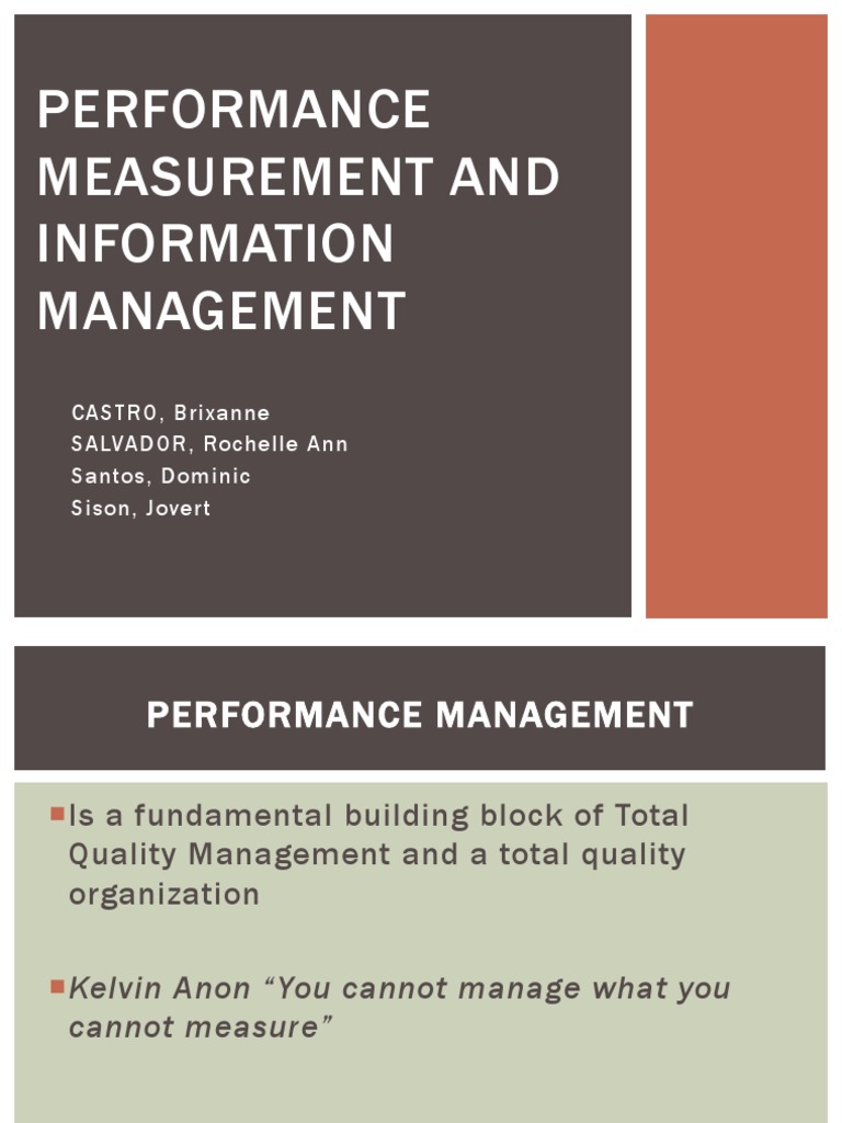 PERFORMANCE MEASUREMENT AND INFORMATION MANAGEMENT