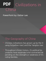 The Big Idea Chinese civilization began with the Shang dynasty along the Huang He. Main Ideas Chinas physical geography made farming possible but travel and communication difficult. Civilization began in China along the Huang He and Chang Jiang rivers. Chinas first dynasties helped Chinese society develop and made many other achievements.