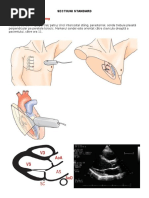 Spatiul 3, 4, 5 parasternal stang, markerul sondei catre clavicula