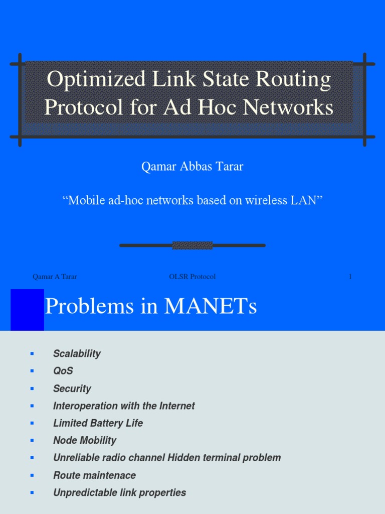 in Ad-Hoc Networks Using OLSR Carleton University, CRC,2002