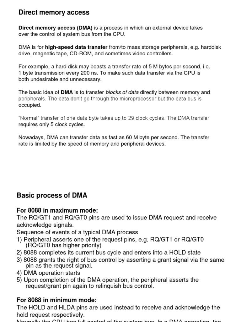 Nowadays, DMA can transfer data as fast as 60 M byte per second. The transfer