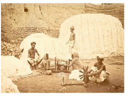 cotton, the fibres are separated from seed and taken round