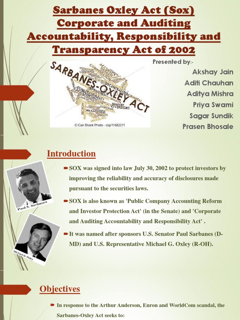 SEC chairman Christopher cox stated in 2007: "Sarbanesoxley helped restore trust in