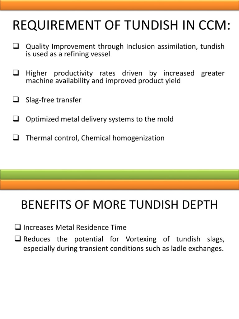 ADVANTAGES OF SHALLOWER TUNDISH: