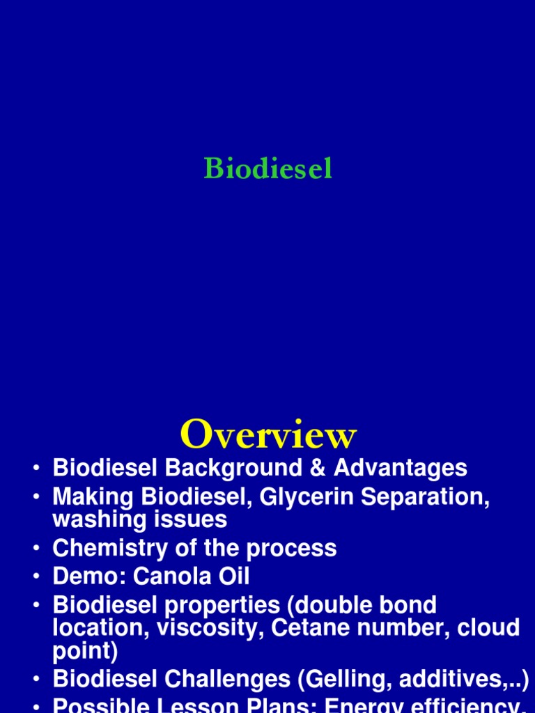 Biodiesel Challenges (Gelling, additives,..)